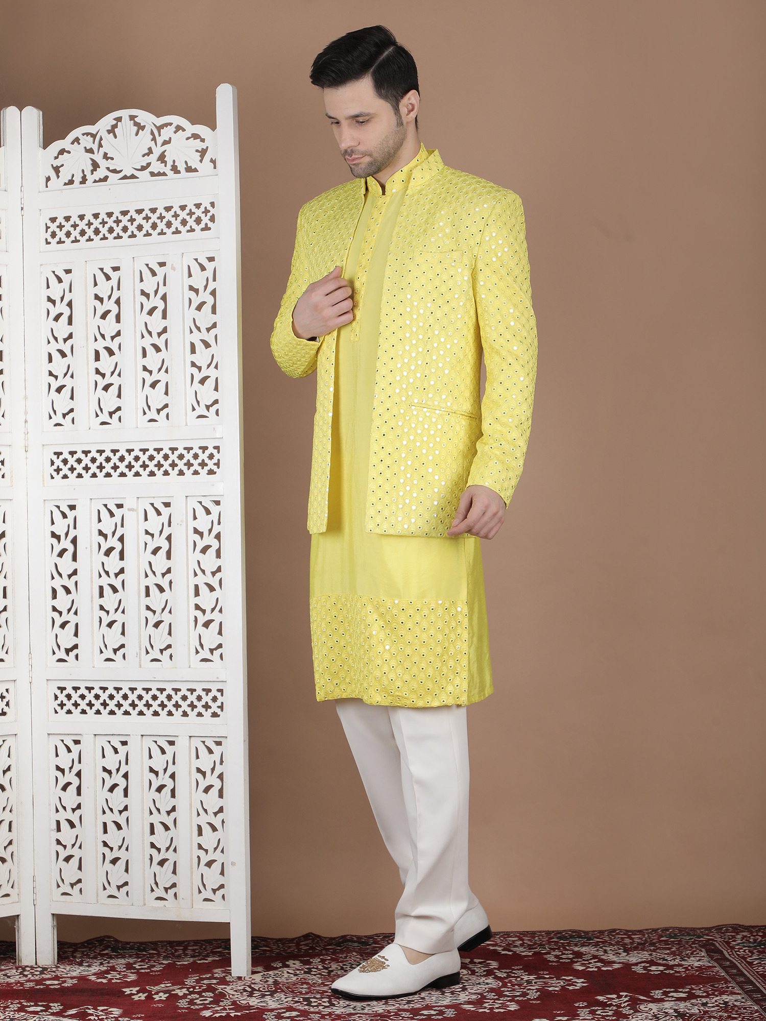 Experience timeless elegance with the B Gala-DCHPFO-26. Designed for the modern gentleman, this premium ethnic wear piece blends traditional craftsmanship with contemporary sophistication. Made using high-quality breathable fabric, it ensures superior comfort and style for weddings, festive occasions, and grand celebrations. The refined detailing and tailored fit enhance your overall presence, making it a perfect statement outfit. Priced at ₹41990, this outfit reflects luxury, heritage, and unmatched quality. Elevate your wardrobe with this distinguished piece and stand out effortlessly at every event.