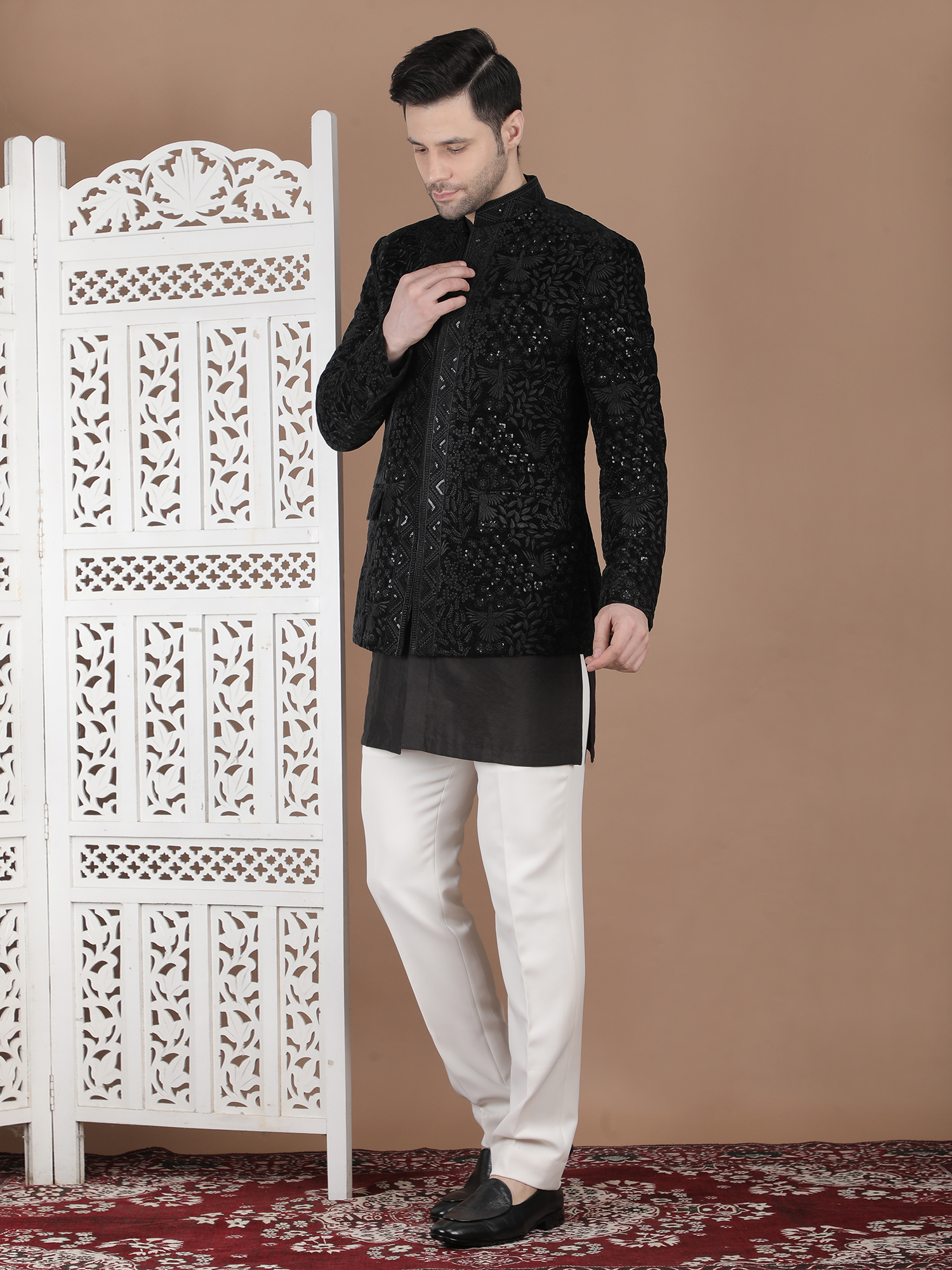 Experience timeless elegance with the B Gala-DCR1-26. Designed for the modern gentleman, this premium ethnic wear piece blends traditional craftsmanship with contemporary sophistication. Made using high-quality breathable fabric, it ensures superior comfort and style for weddings, festive occasions, and grand celebrations. The refined detailing and tailored fit enhance your overall presence, making it a perfect statement outfit. Priced at ₹36990, this outfit reflects luxury, heritage, and unmatched quality. Elevate your wardrobe with this distinguished piece and stand out effortlessly at every event.