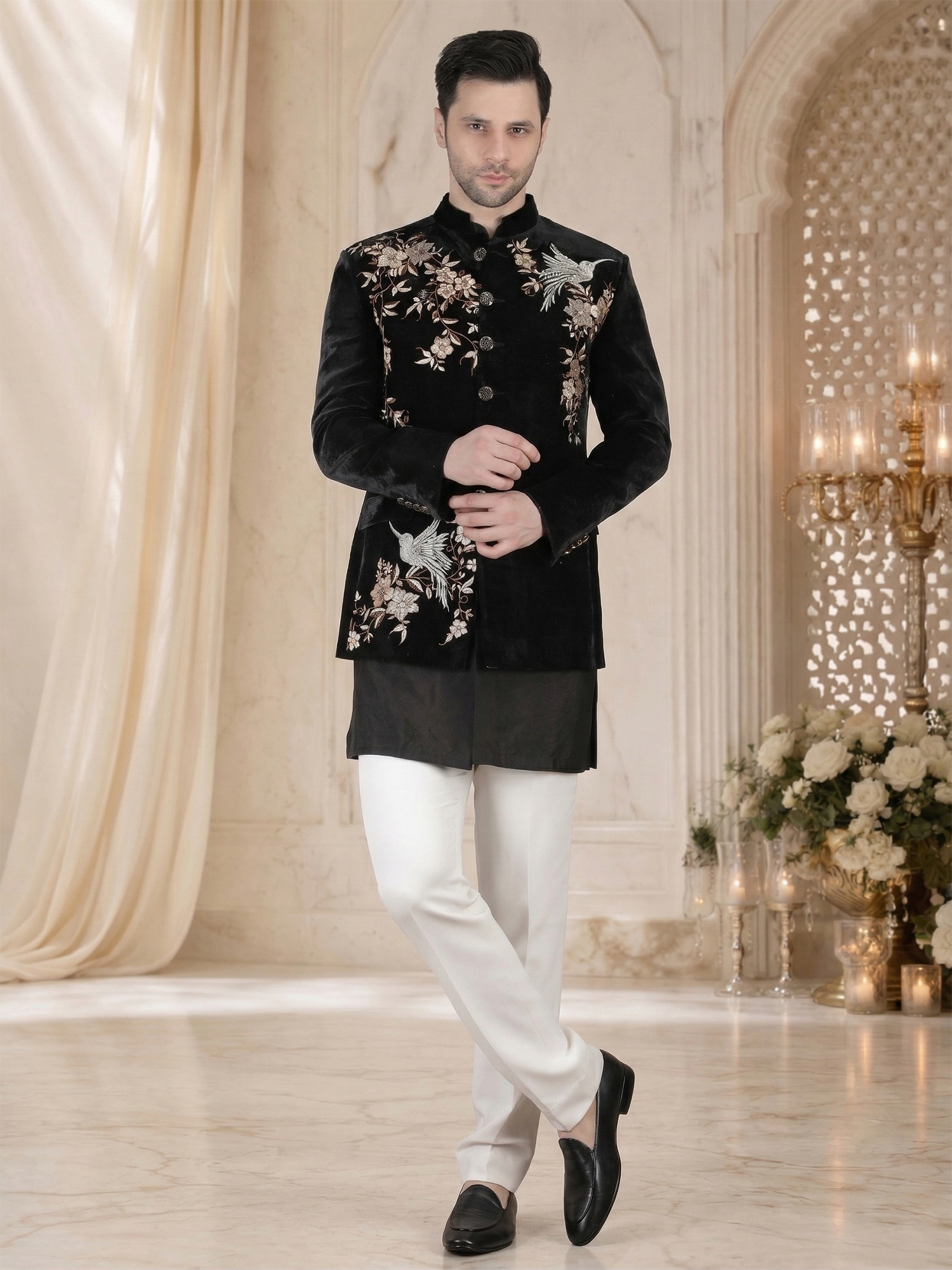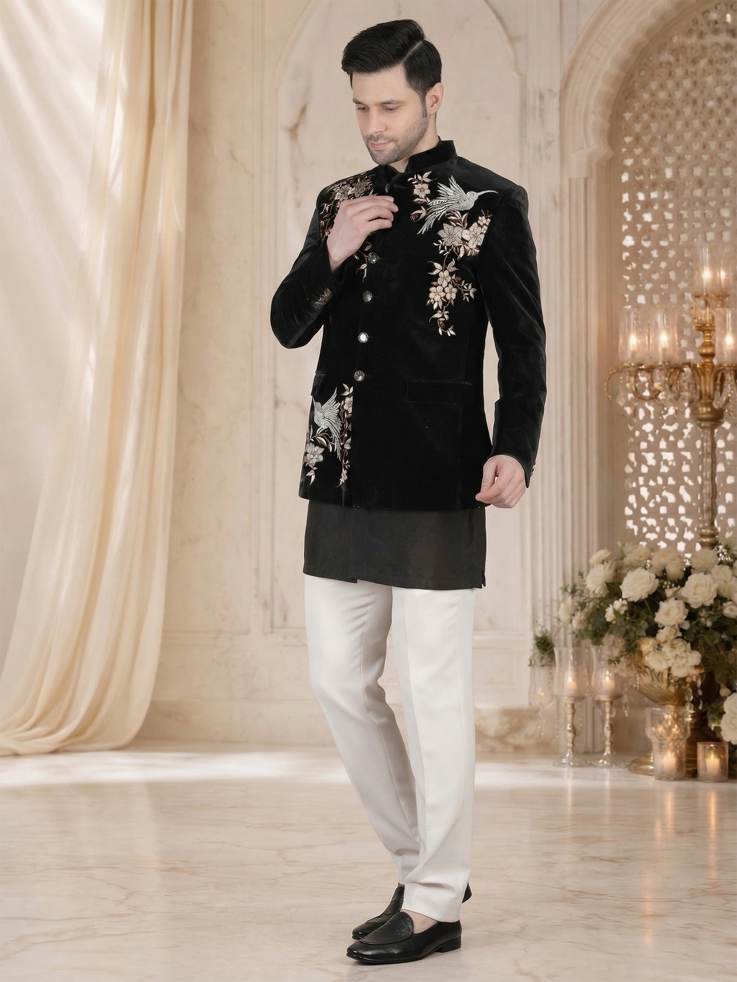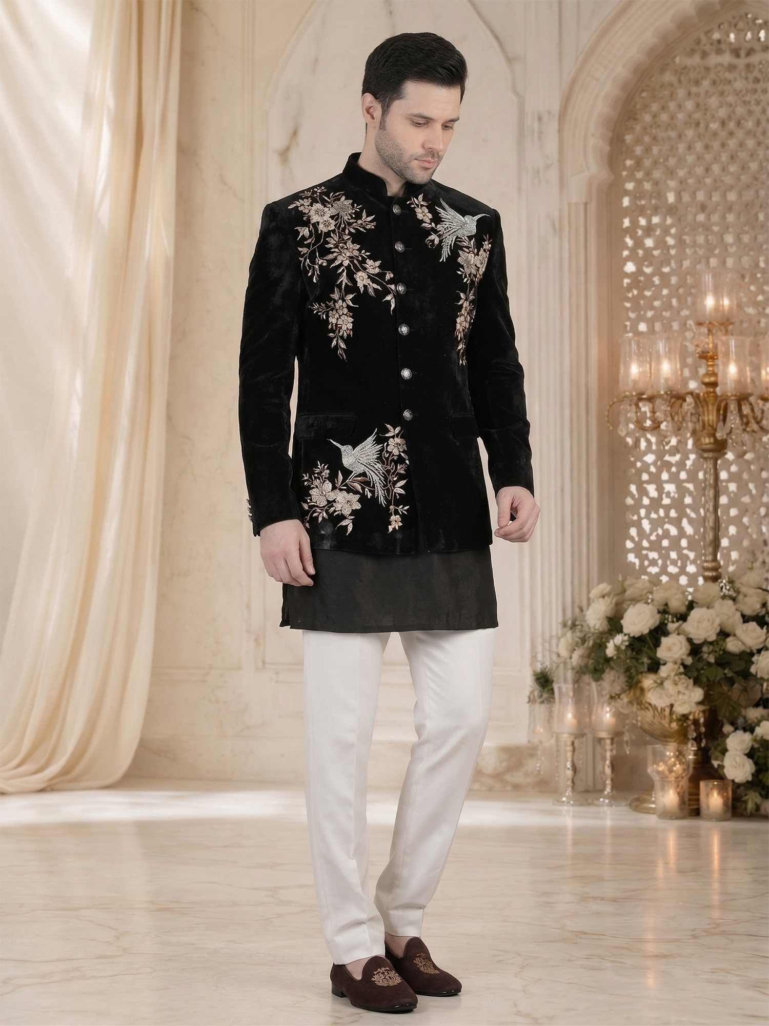 Black Bird Embroidery Bandhgala Styling & Occasions