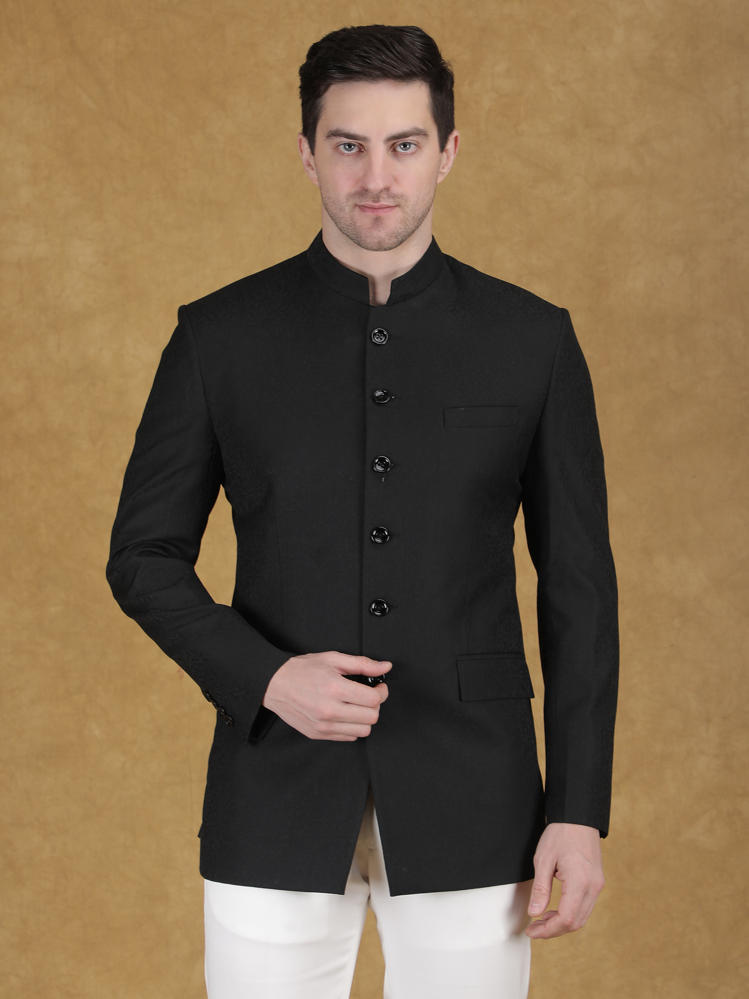 Black Premium Wool Blend Suiting Bandhgala for Reception