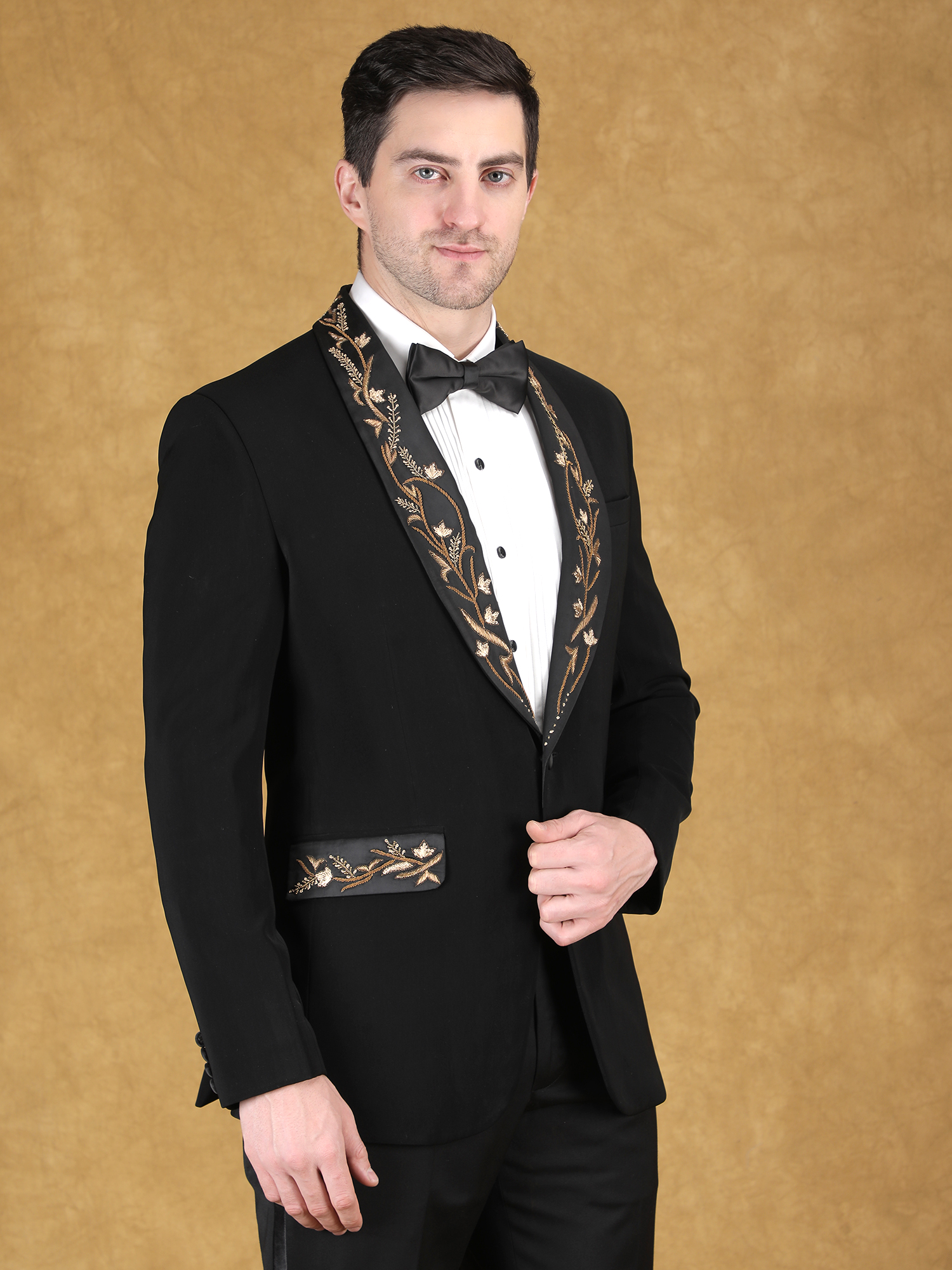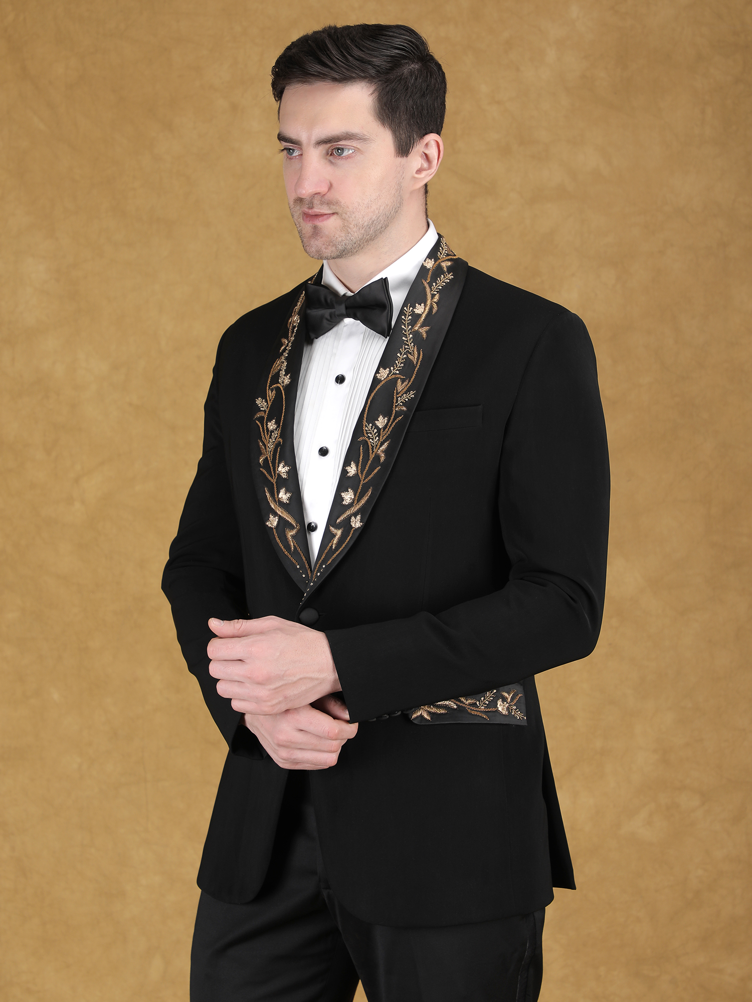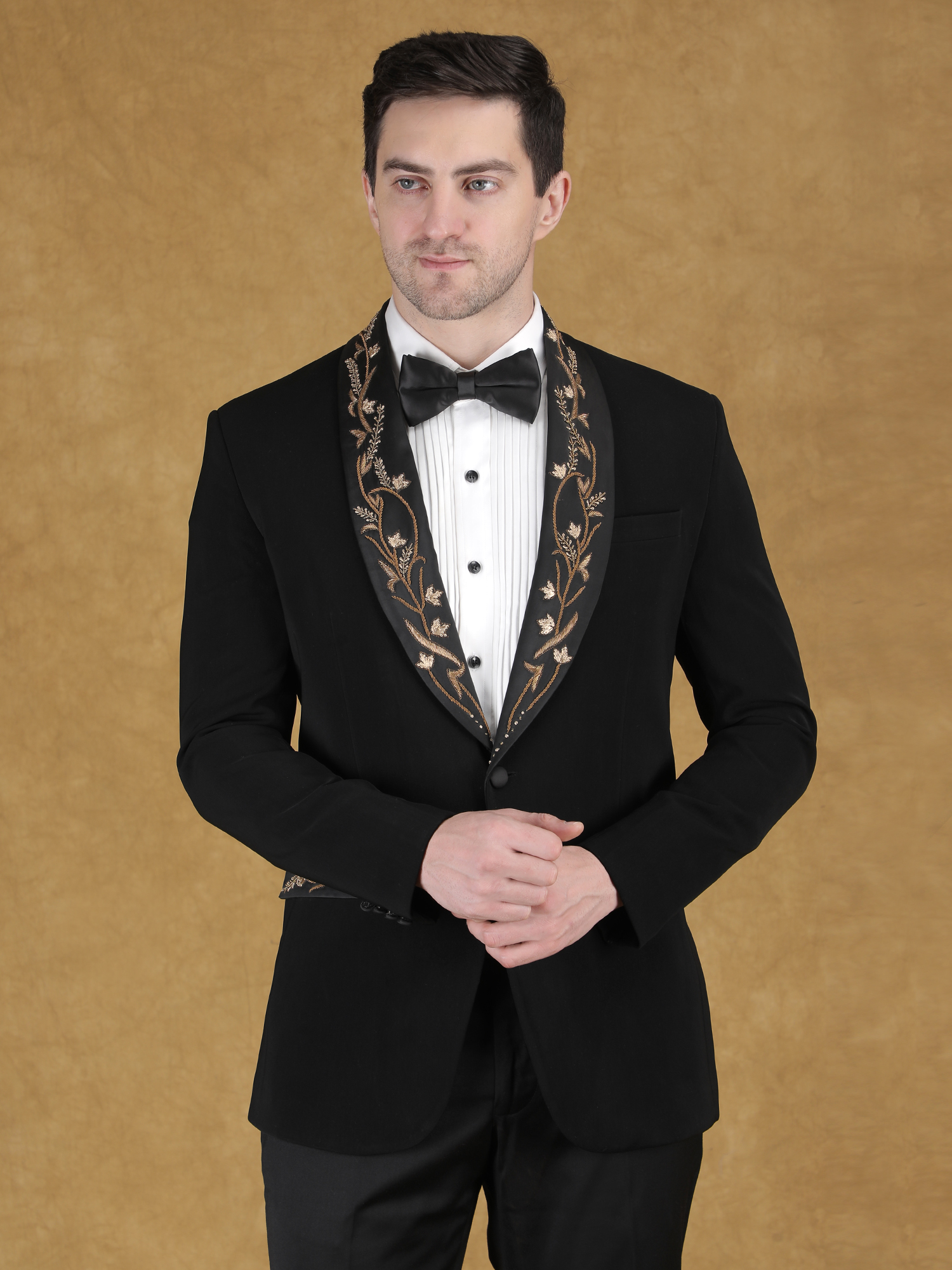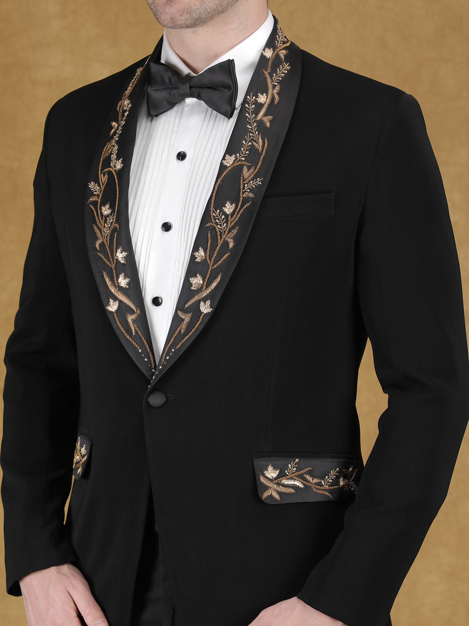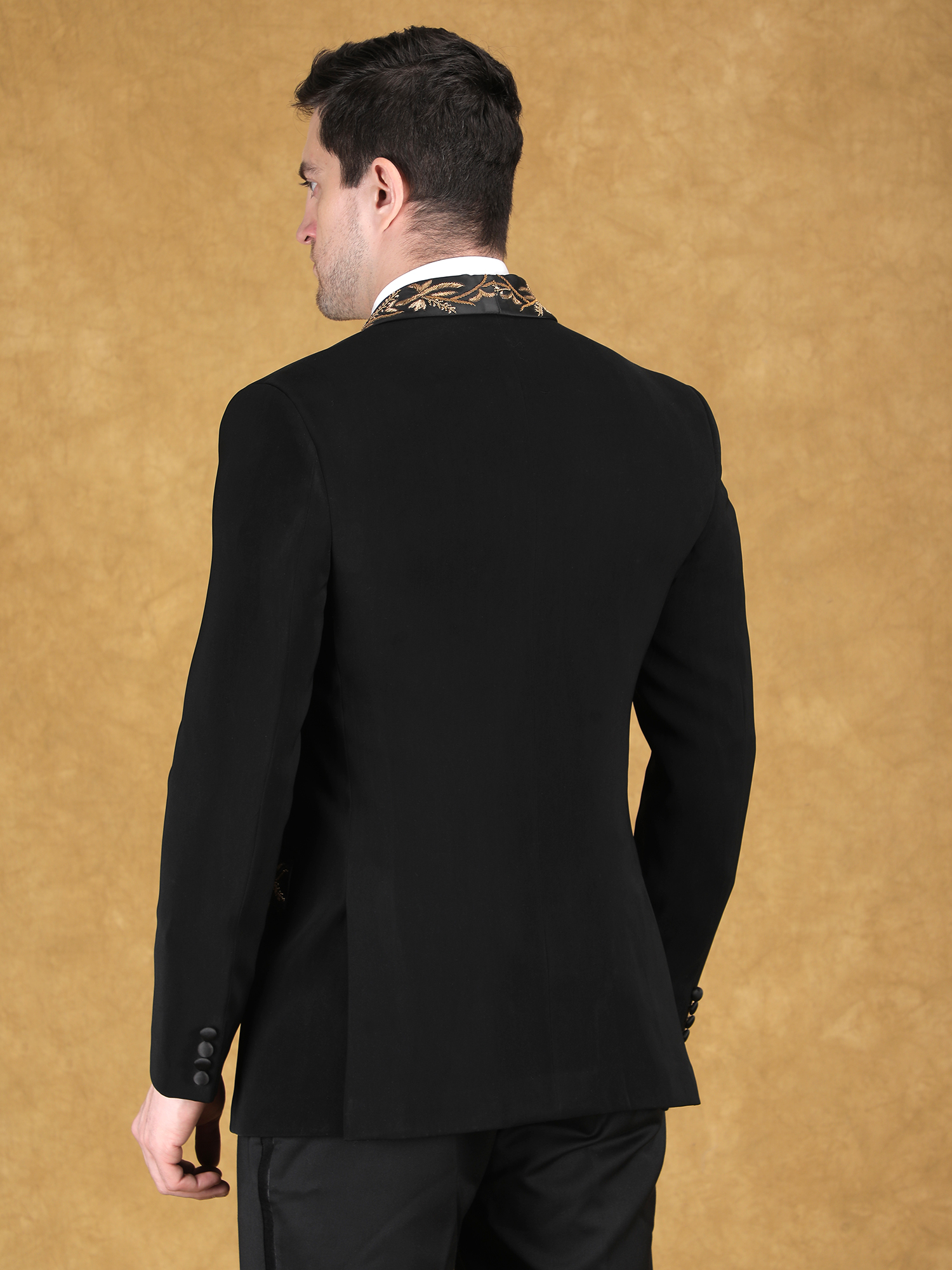 Black Zari Embroidery Tuxedo Blazer for Reception
