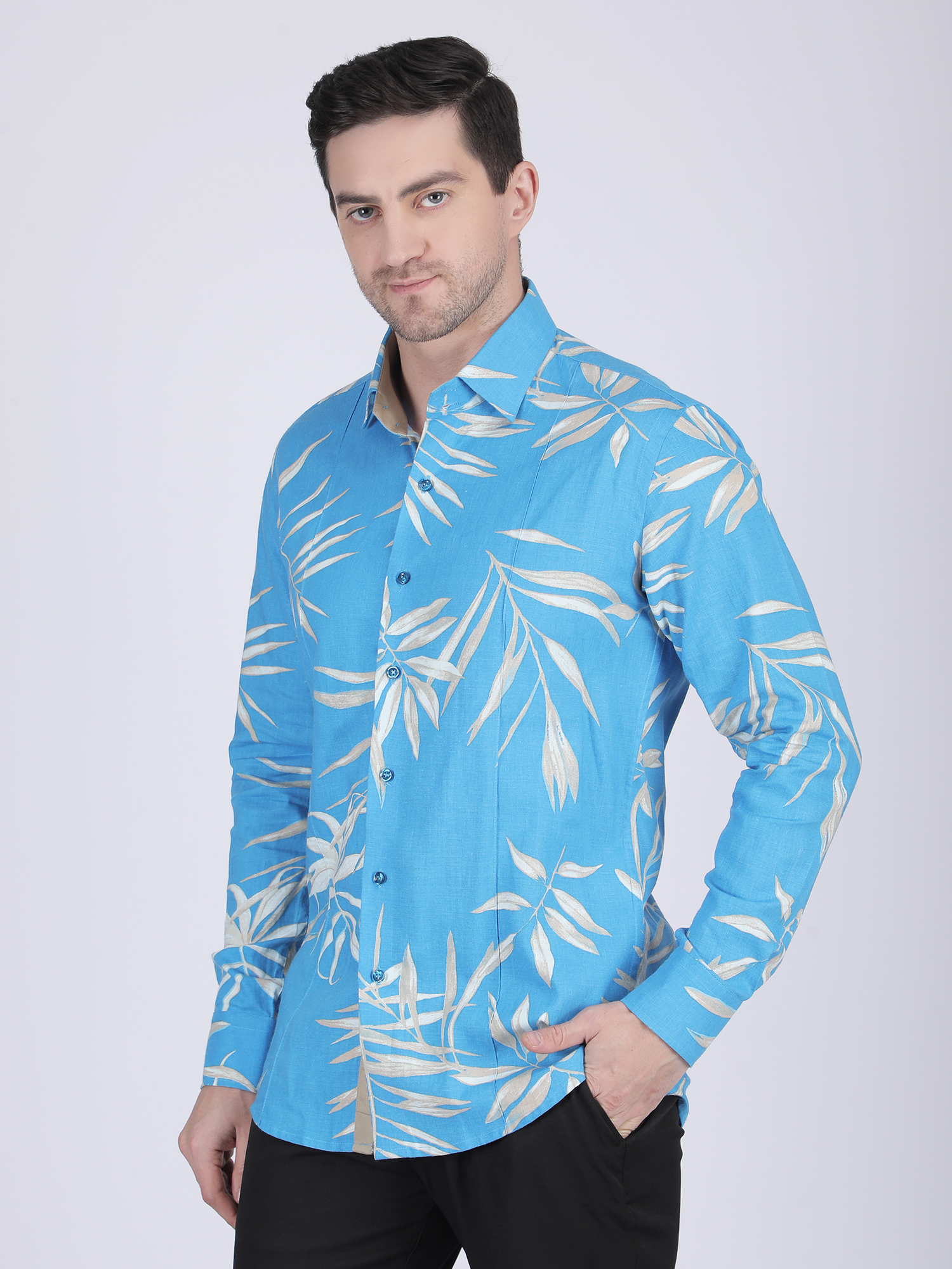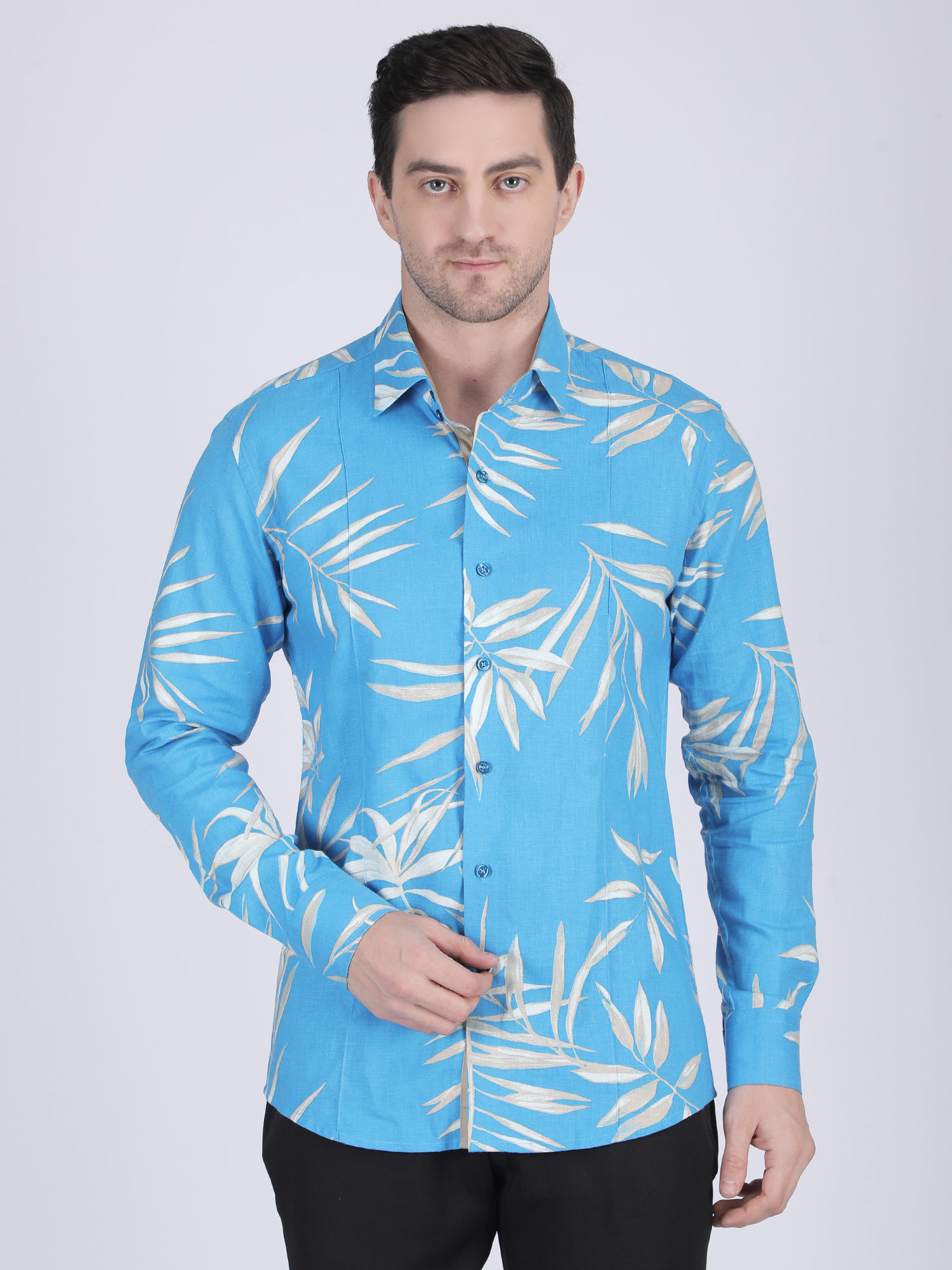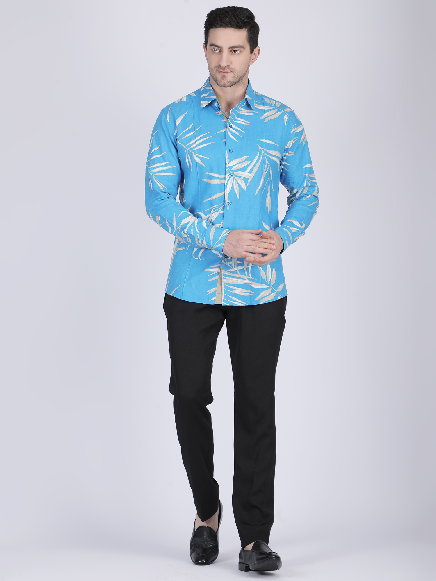 This Blue Printed Shirt is designed for summer outings, vacations, and casual occasions where bold prints define personal style. The vibrant blue base creates a fresh and energetic look, while the leaf-inspired print adds a relaxed yet premium character. The clean silhouette, structured collar, and sharp front placket enhance the overall finish, so it delivers a stylish and confident appearance.