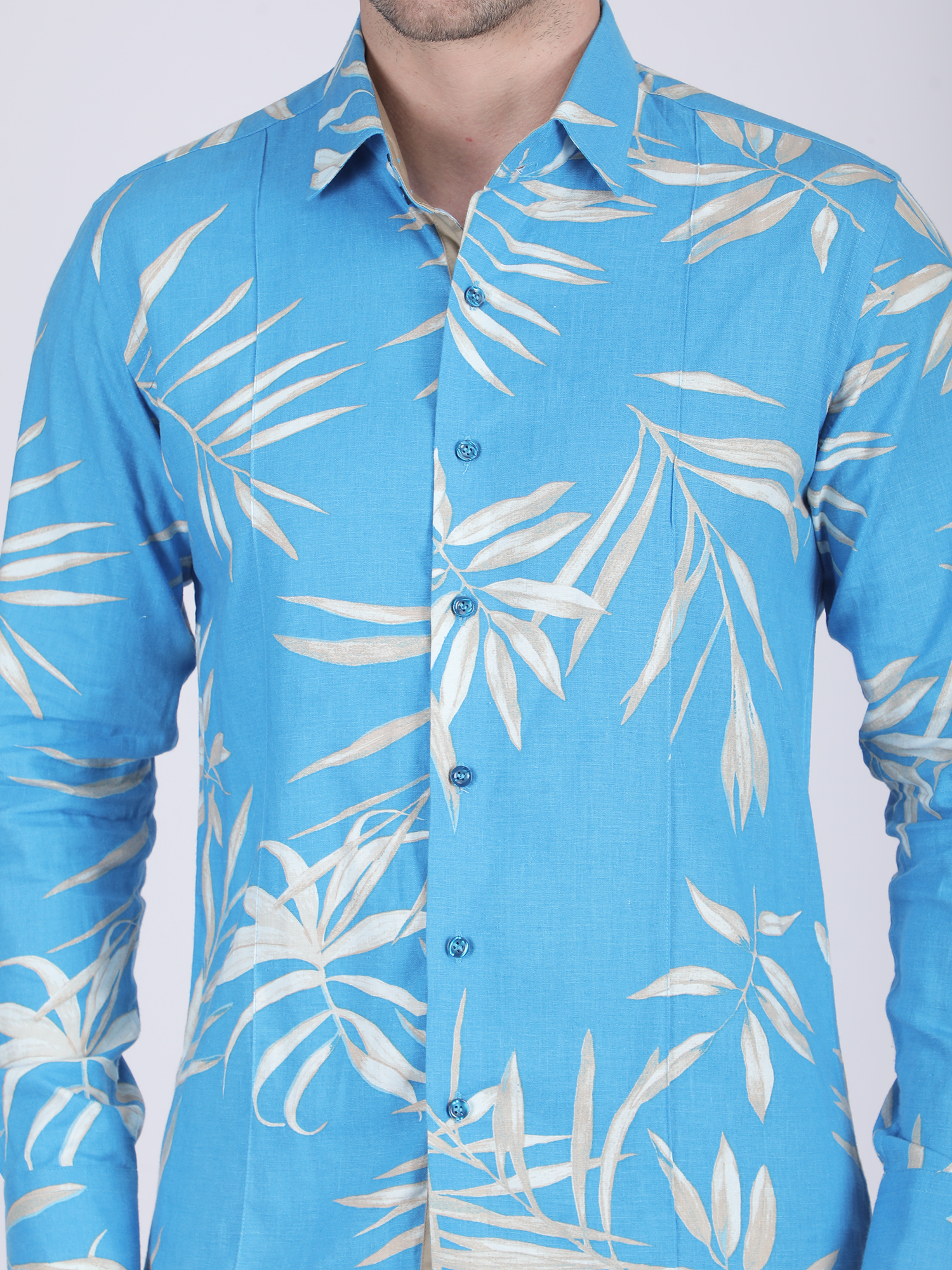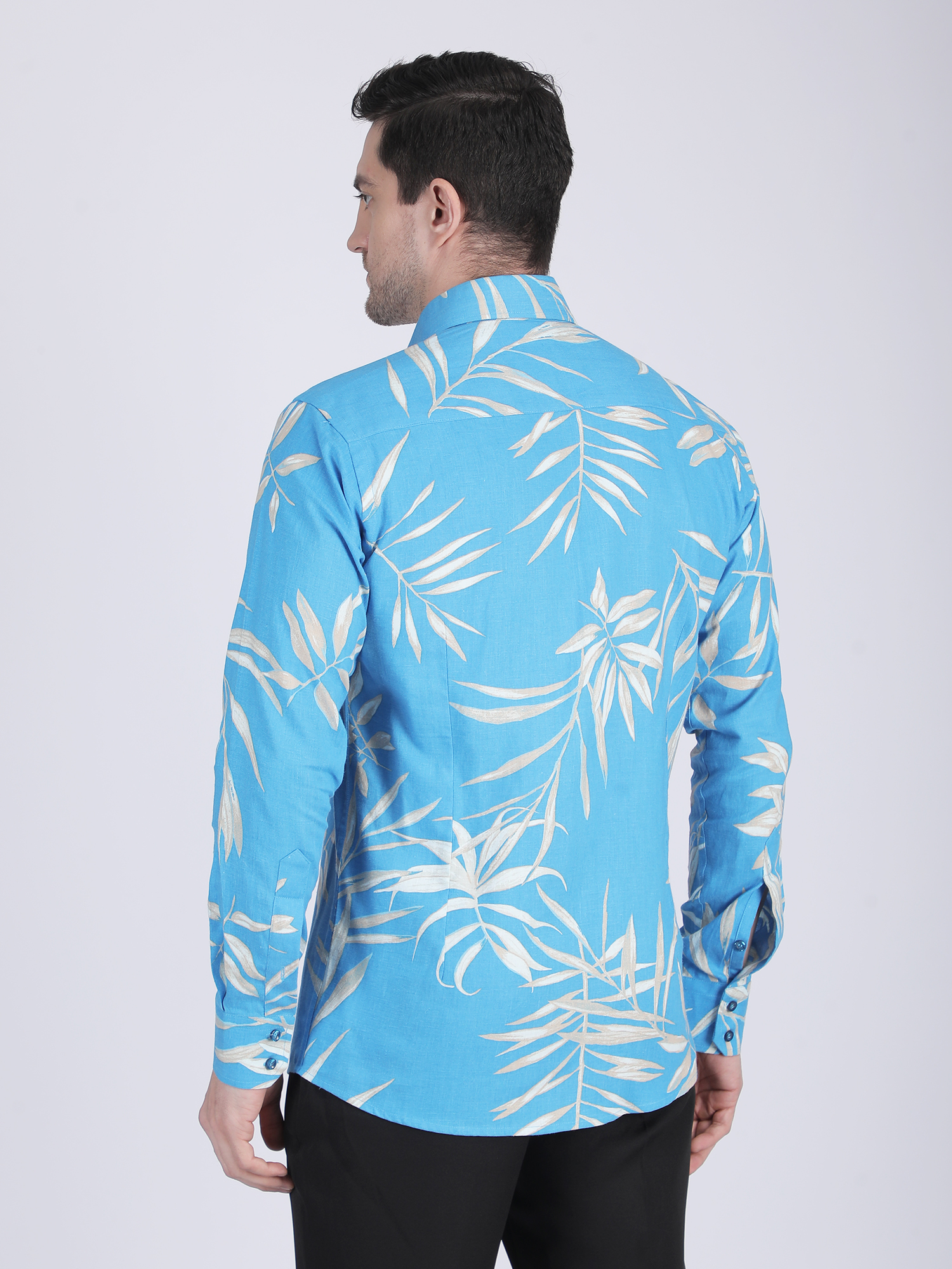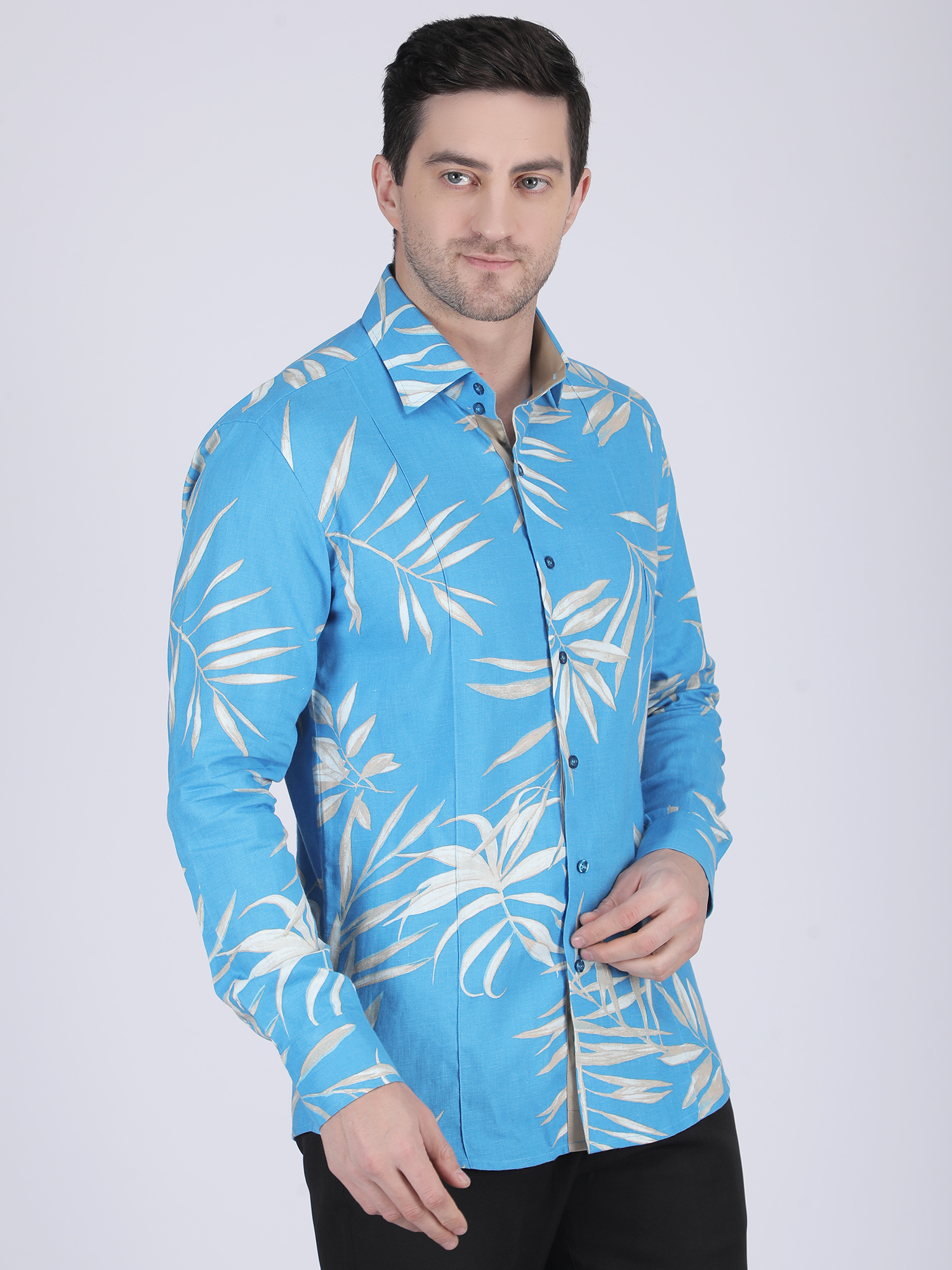 This Blue Printed Shirt is designed for summer outings, vacations, and casual occasions where bold prints define personal style. The vibrant blue base creates a fresh and energetic look, while the leaf-inspired print adds a relaxed yet premium character. The clean silhouette, structured collar, and sharp front placket enhance the overall finish, so it delivers a stylish and confident appearance.