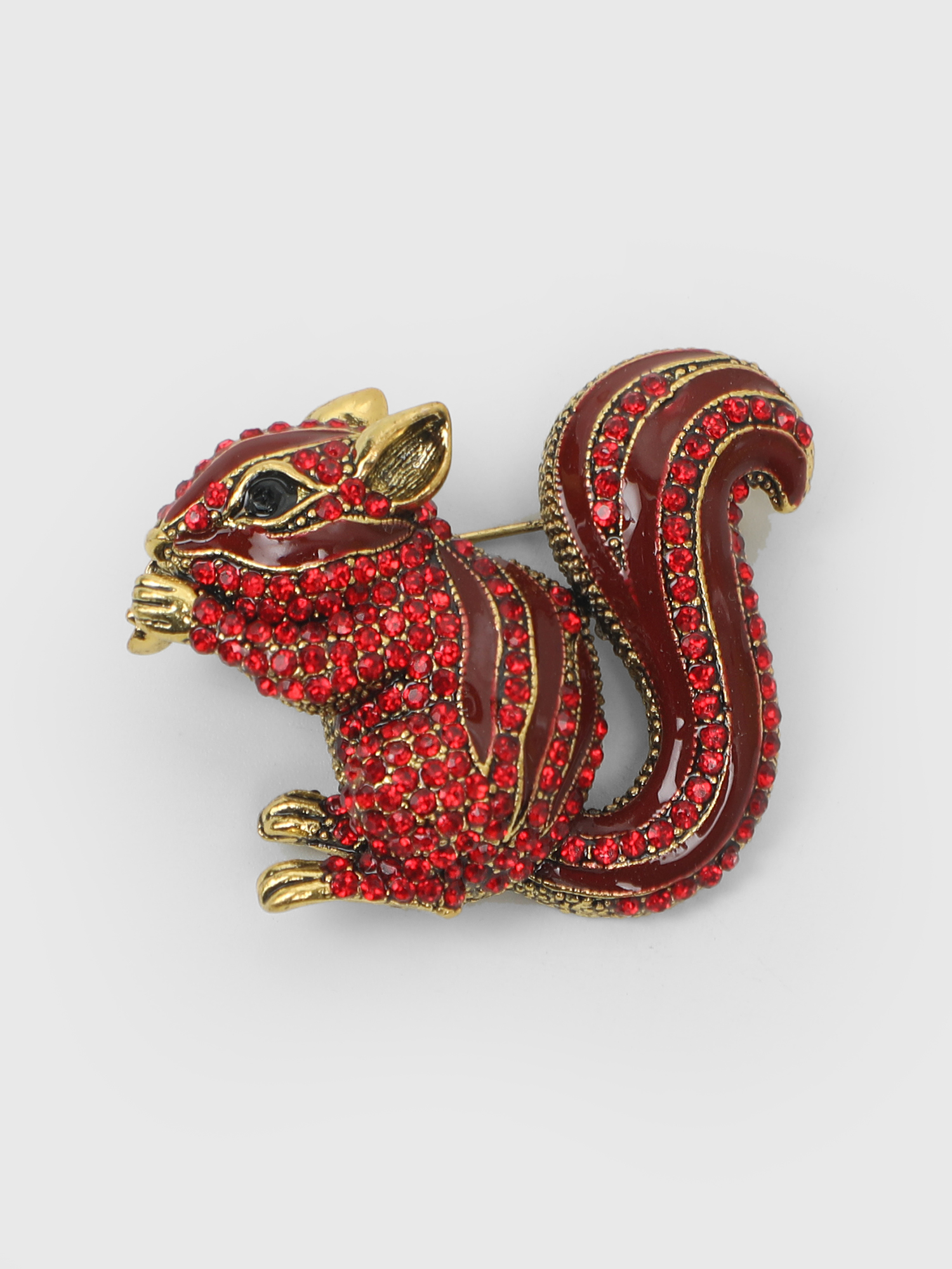 This brooch features dense red crystal embellishments, carefully placed to create a rich textured surface. The animal motif adds uniqueness and personality, while the gold-tone detailing enhances contrast and luxury appeal. Moreover, the curved design and fine finishing give depth and dimension. As a result, this Brooch stands out as a statement accessory.