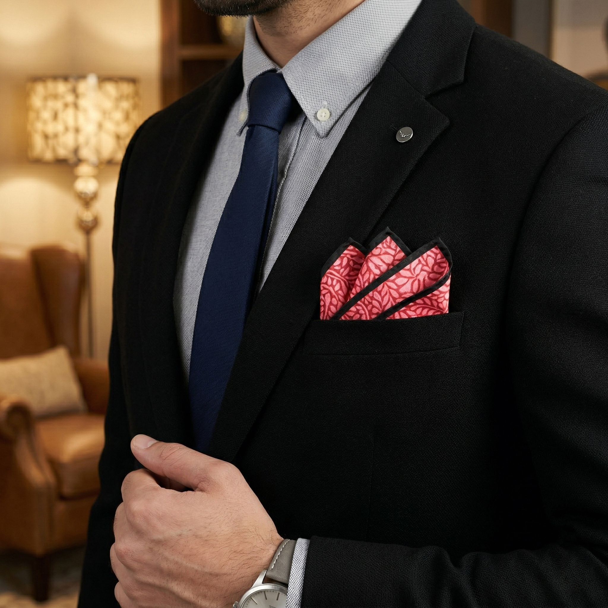 Pairs beautifully with navy, black, and grey suits. Style with a crisp white shirt for a refined look. Ideal for weddings and evening occasions.