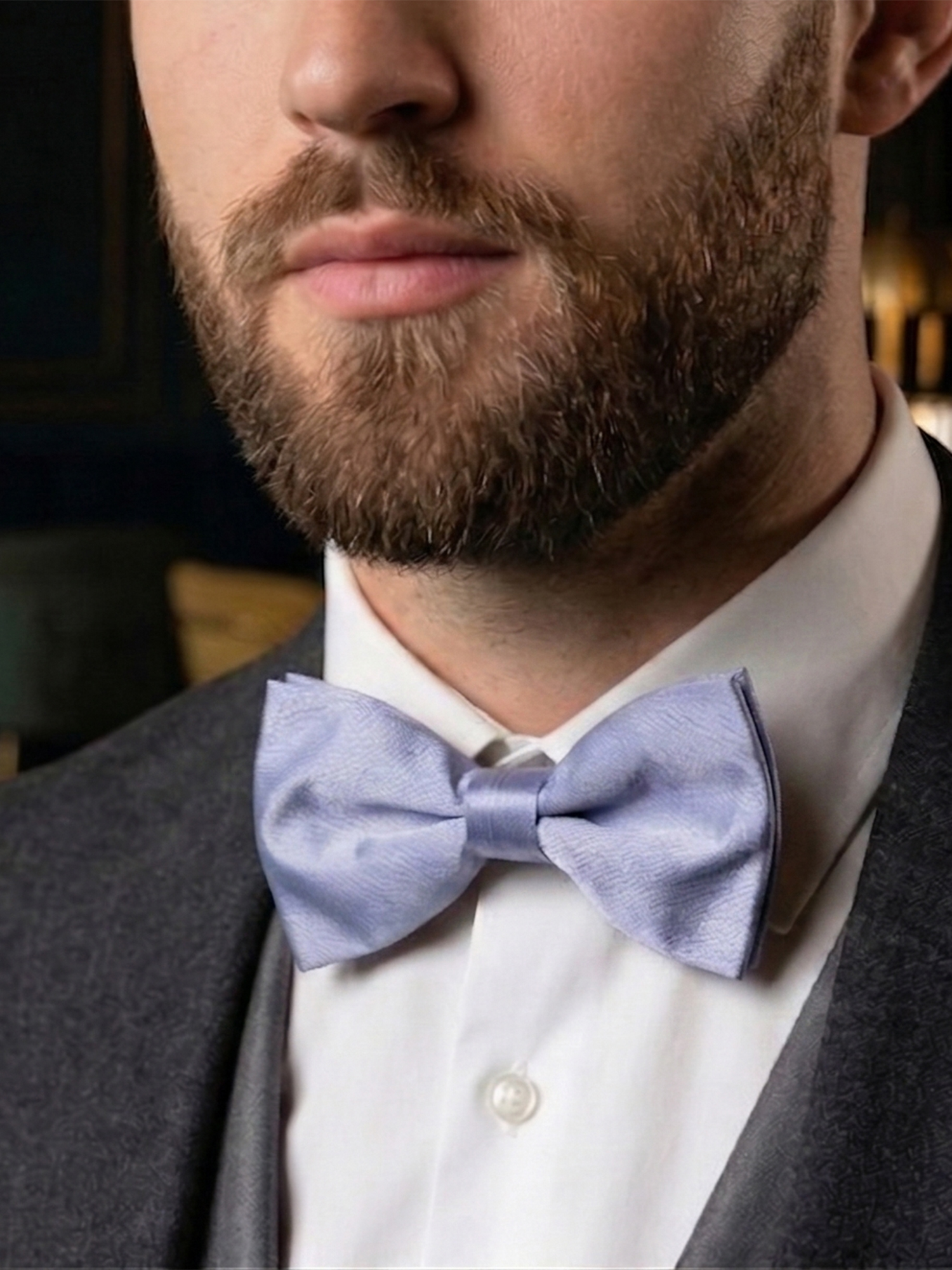 Crafted from premium satin fabric, this design delivers a smooth texture with a gentle sheen that enhances the overall look. In addition, the structured construction ensures that the bow maintains its shape throughout wear. Therefore, this light blue satin bow tie becomes a versatile accessory that balances elegance with contemporary style.