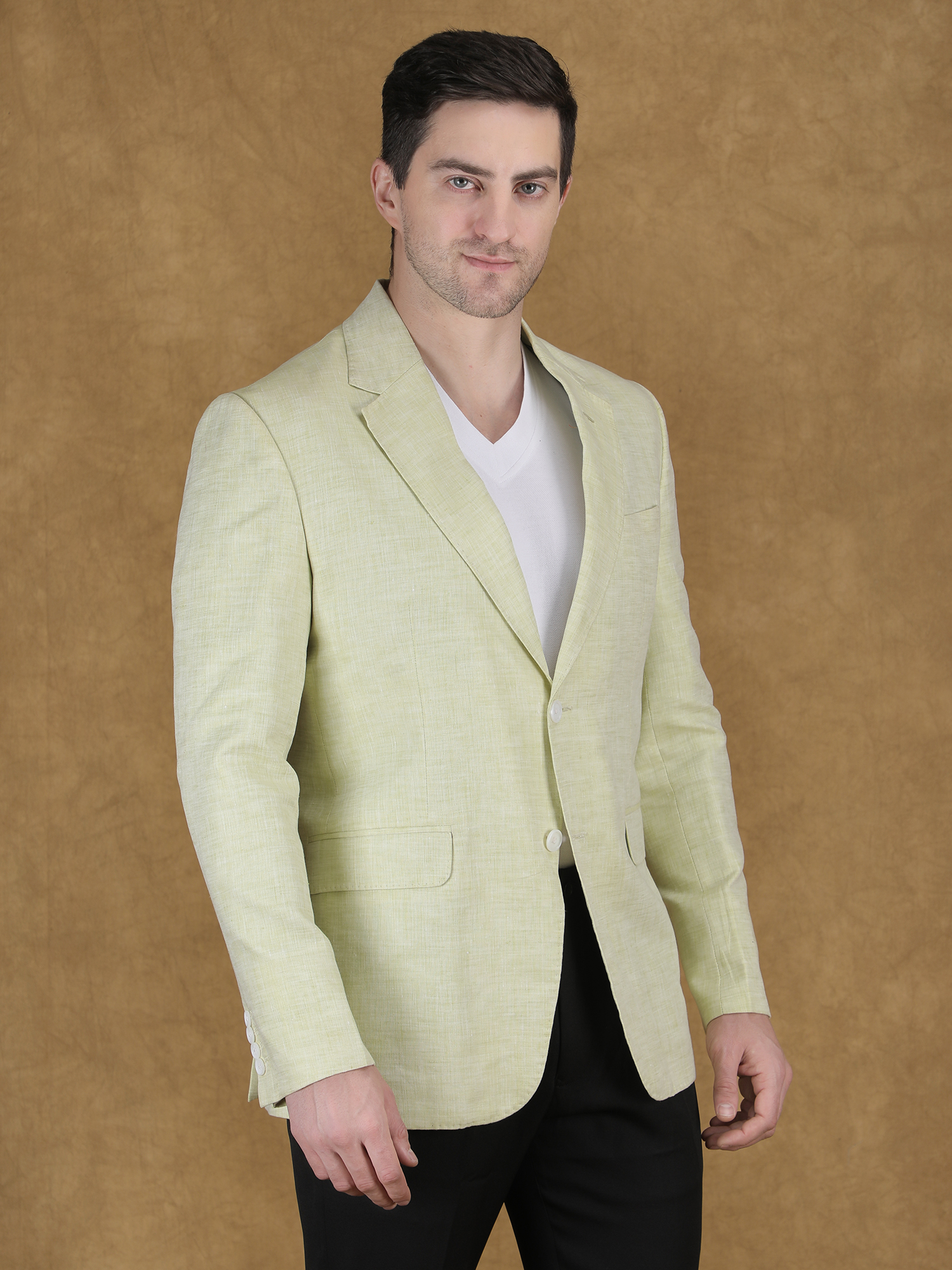 This Light Green Linen Blazer suits summer parties, daytime receptions, casual formal events, and outdoor gatherings. The fresh color creates a standout yet elegant presence. Therefore, it allows you to maintain a stylish and comfortable appearance effortlessly.