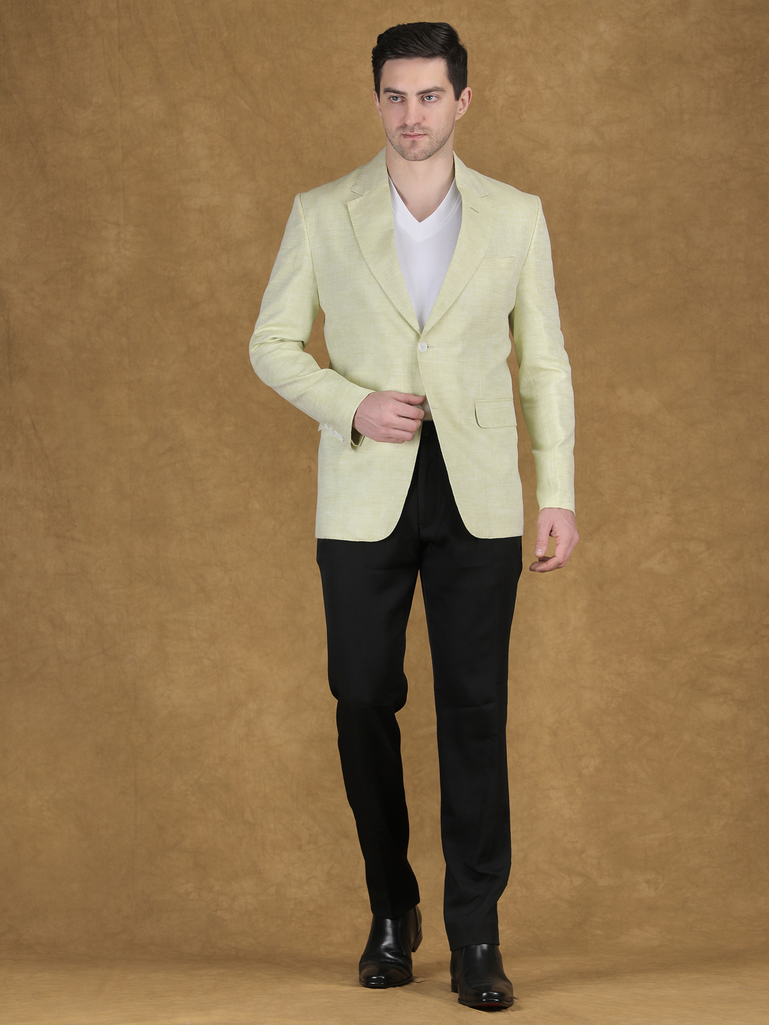 This Light Green Linen Blazer offers a refreshing and modern look designed for summer occasions and daytime events. The soft green tone brings a natural and calming aesthetic, making it perfect for men who prefer subtle yet stylish outfits. The design keeps a clean and minimal approach, allowing the color and fabric to define the overall appeal. Therefore, this Light Green Linen Blazer becomes an ideal choice for warm-weather dressing with a refined touch. Moreover, the light shade enhances versatility, making it suitable for both formal and semi-formal settings.
