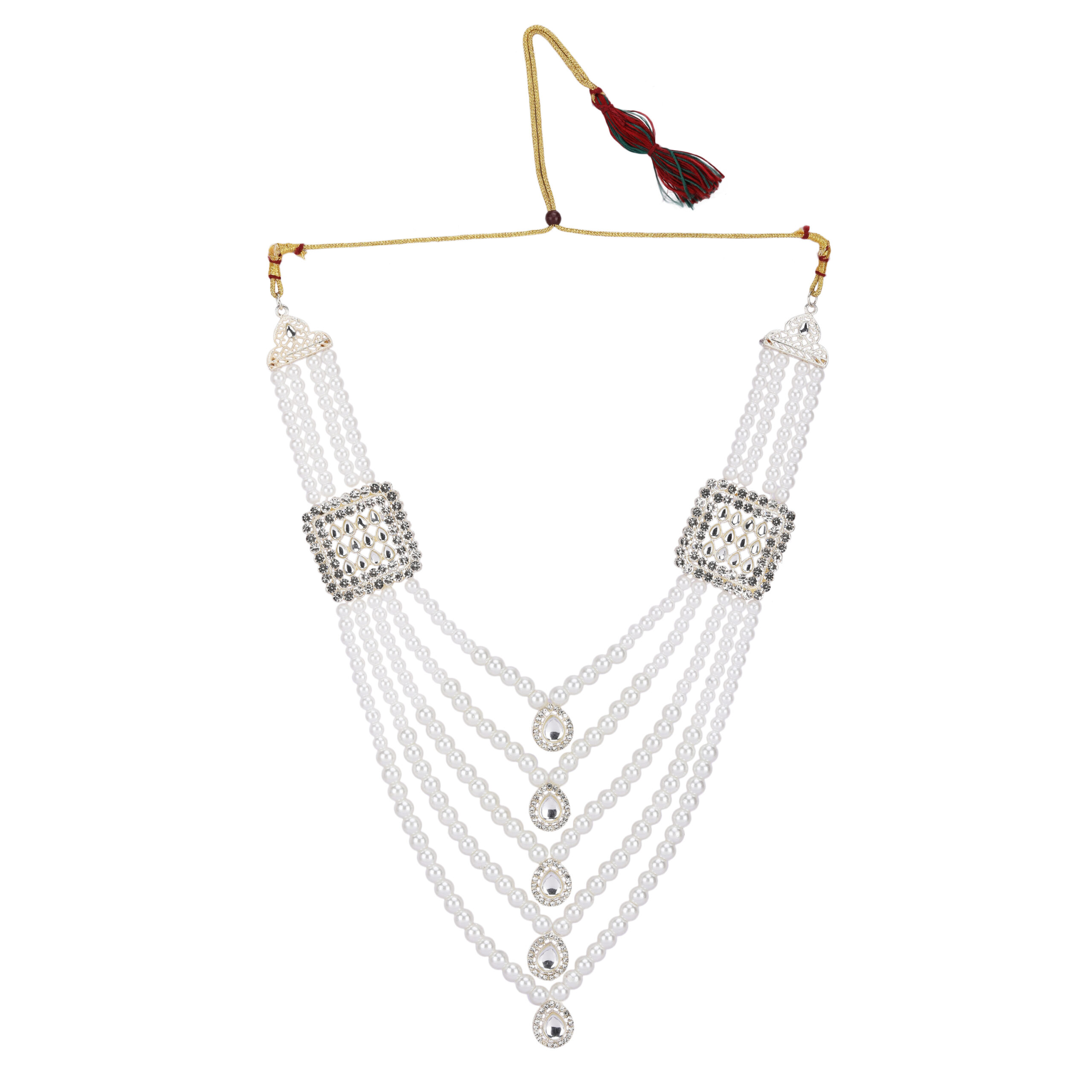 Royal Pearl Multi-Layer Sherwani Mala with Crystal Drops