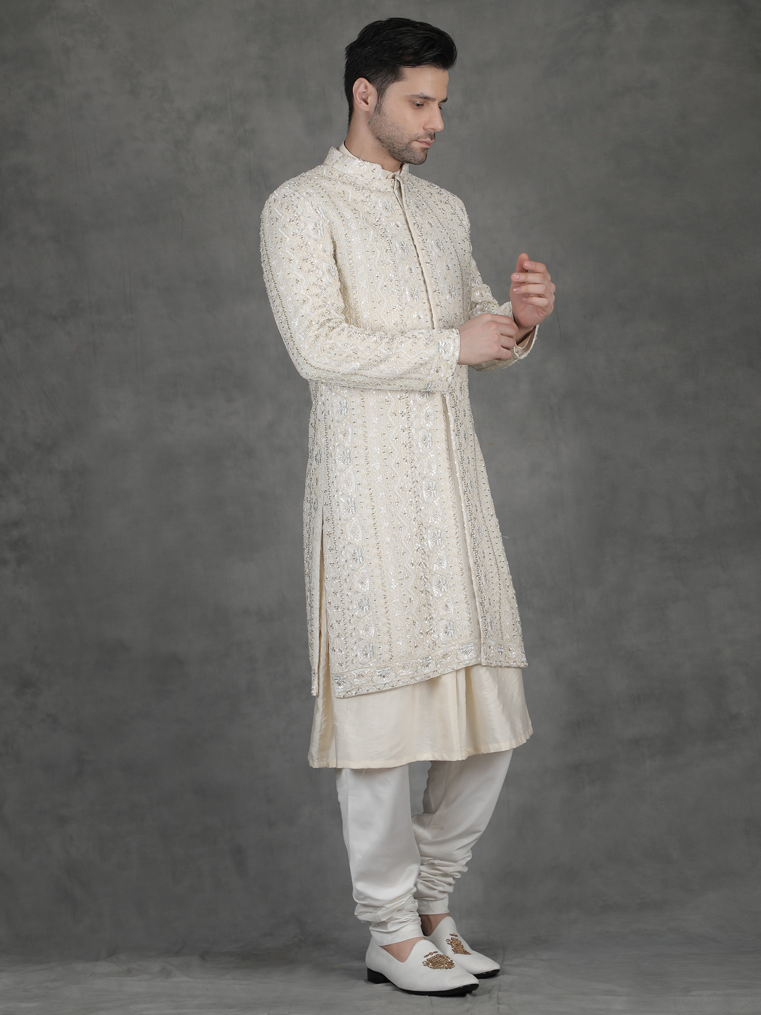 Experience timeless elegance with the Serwani-DCHK-01411. Designed for the modern gentleman, this premium ethnic wear piece blends traditional craftsmanship with contemporary sophistication. Made using high-quality breathable fabric, it ensures superior comfort and style for weddings, festive occasions, and grand celebrations. The refined detailing and tailored fit enhance your overall presence, making it a perfect statement outfit. Priced at ₹59000, this outfit reflects luxury, heritage, and unmatched quality. Elevate your wardrobe with this distinguished piece and stand out effortlessly at every event.