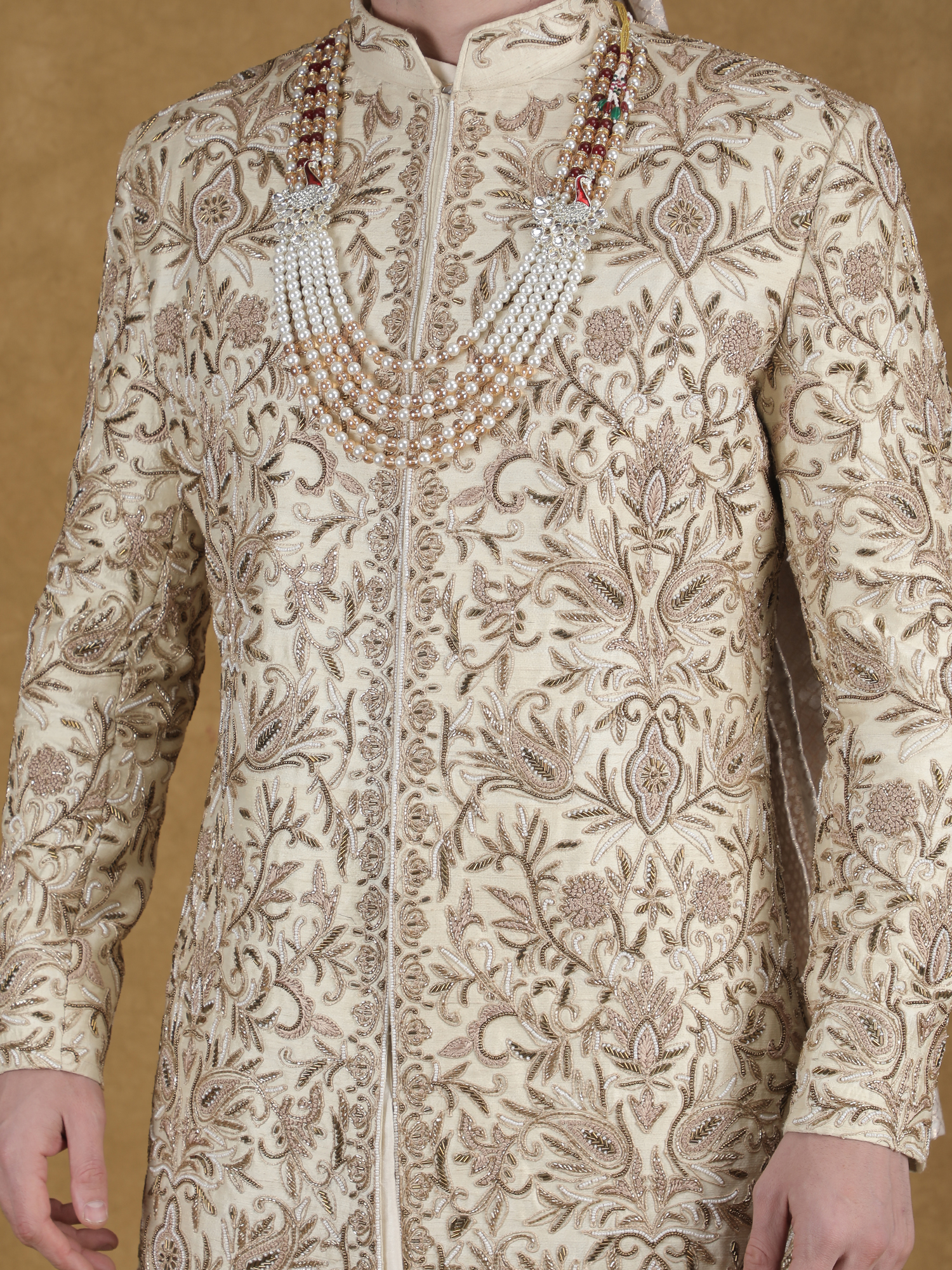Experience timeless elegance with the Sherwani-DCSLK-HENME-26. Designed for the modern gentleman, this premium ethnic wear piece blends traditional craftsmanship with contemporary sophistication. Made using high-quality breathable fabric, it ensures superior comfort and style for weddings, festive occasions, and grand celebrations. The refined detailing and tailored fit enhance your overall presence, making it a perfect statement outfit. Priced at ₹101990, this outfit reflects luxury, heritage, and unmatched quality. Elevate your wardrobe with this distinguished piece and stand out effortlessly at every event.