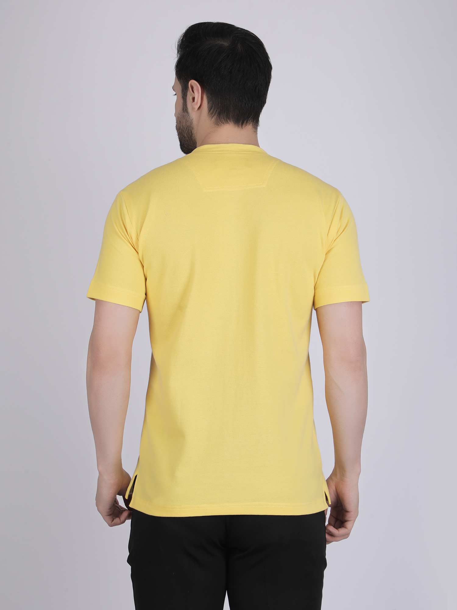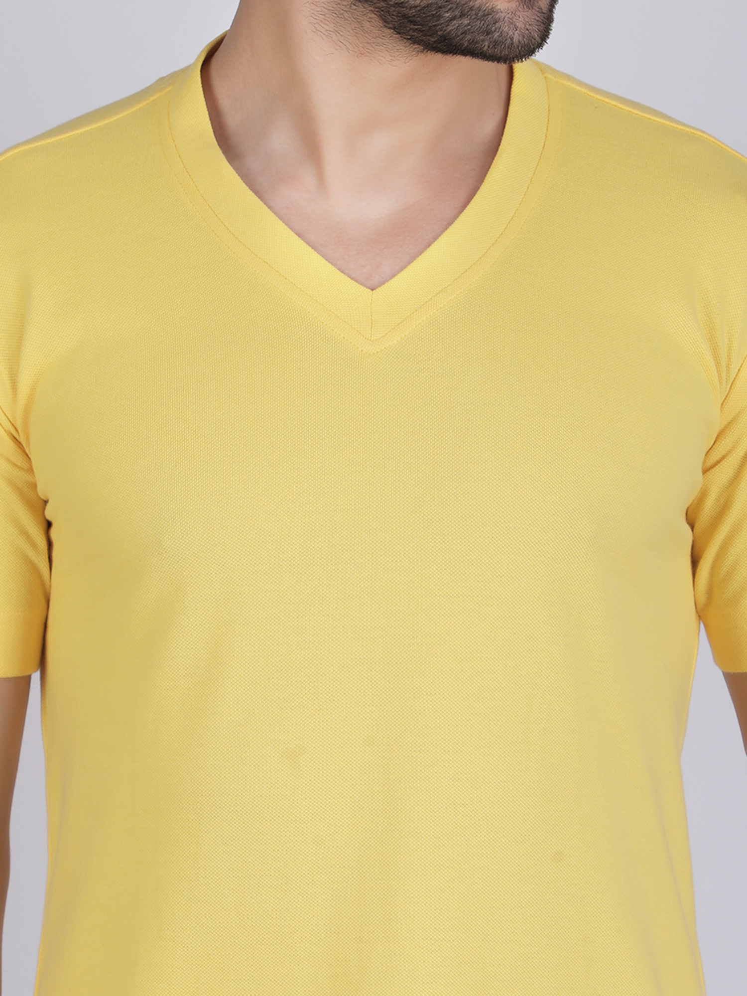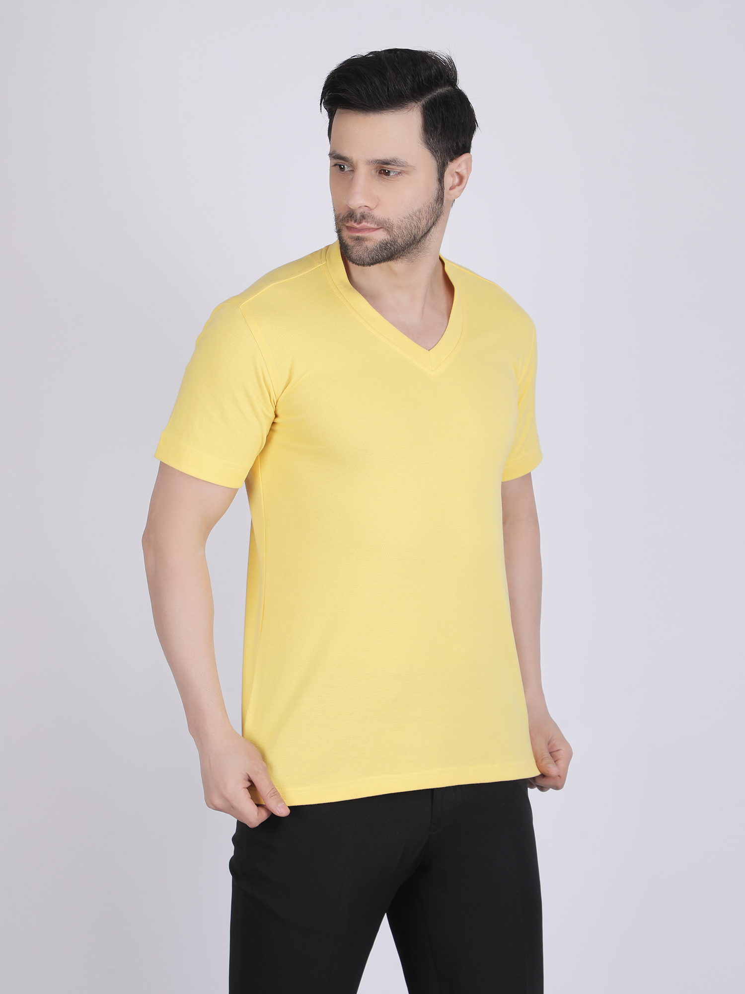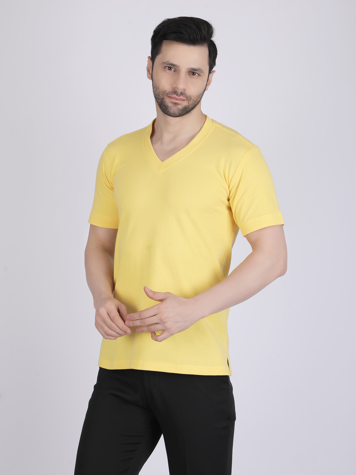 Vibrant yellow V-neck t-shirt for men – comfort meets style in this versatile casual essential.