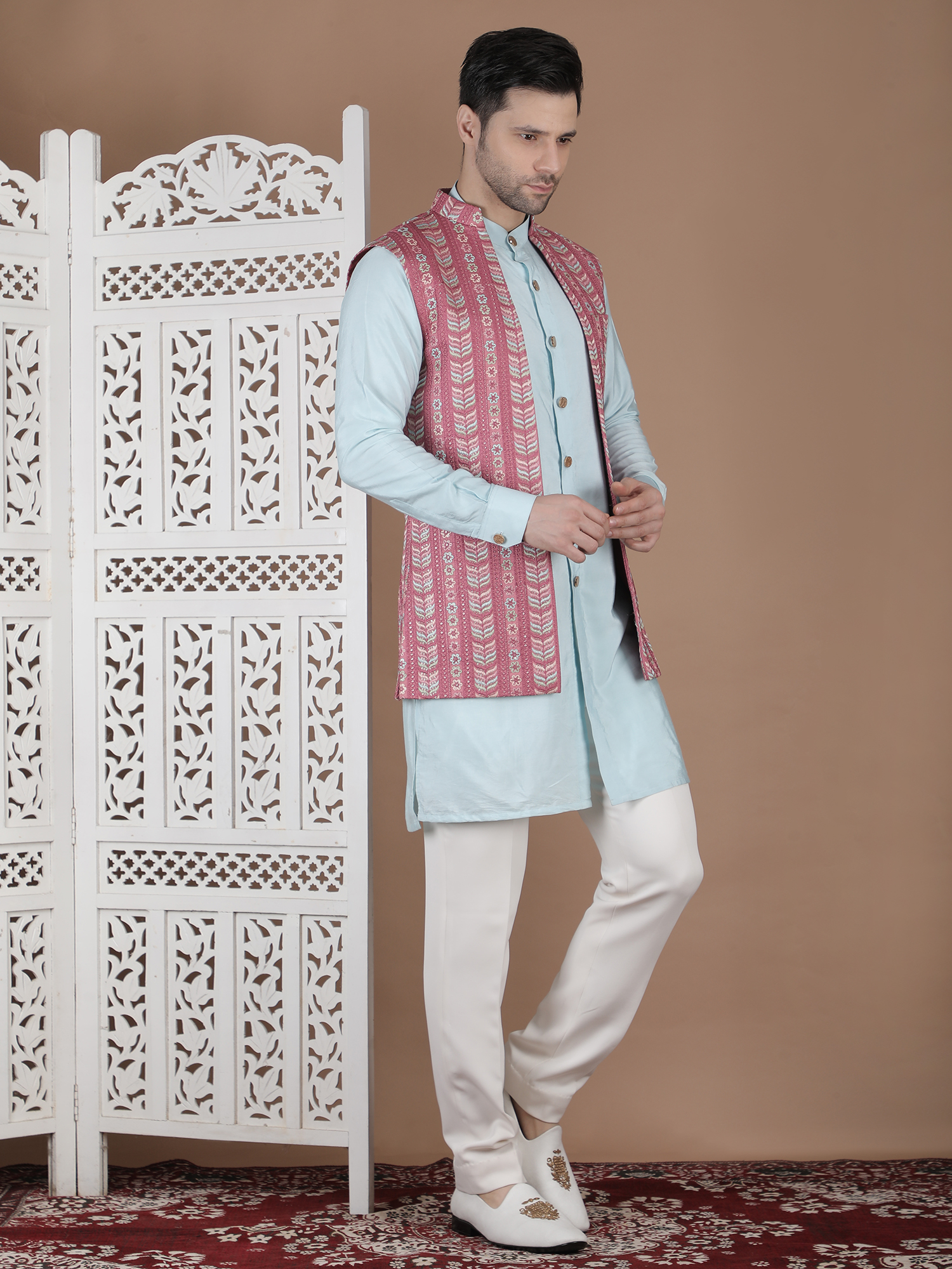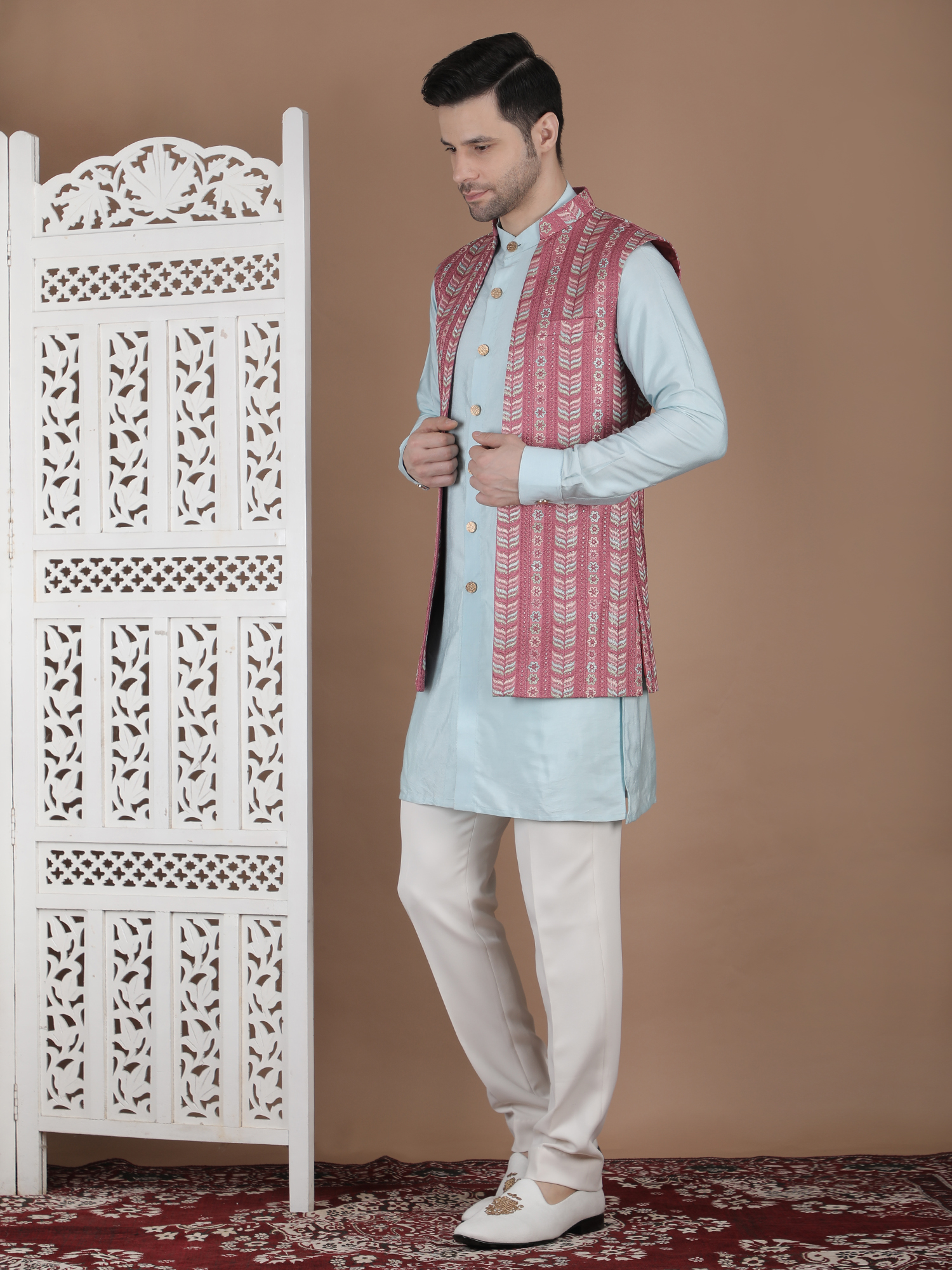 Experience timeless elegance with the W COAT-DCTVST-26. Designed for the modern gentleman, this premium ethnic wear piece blends traditional craftsmanship with contemporary sophistication. Made using high-quality breathable fabric, it ensures superior comfort and style for weddings, festive occasions, and grand celebrations. The refined detailing and tailored fit enhance your overall presence, making it a perfect statement outfit. Priced at ₹21990, this outfit reflects luxury, heritage, and unmatched quality. Elevate your wardrobe with this distinguished piece and stand out effortlessly at every event.