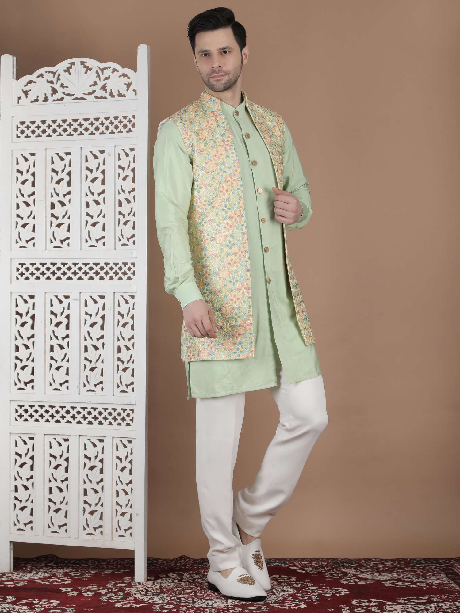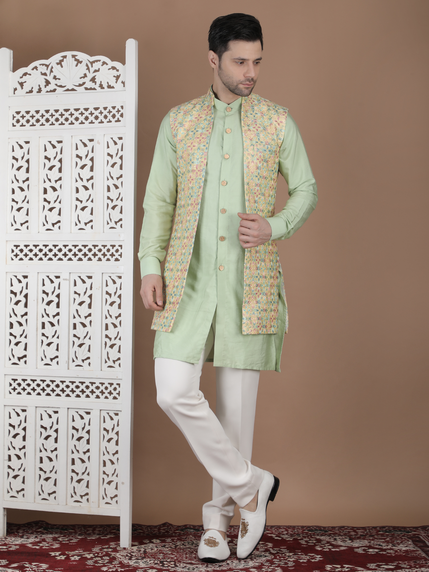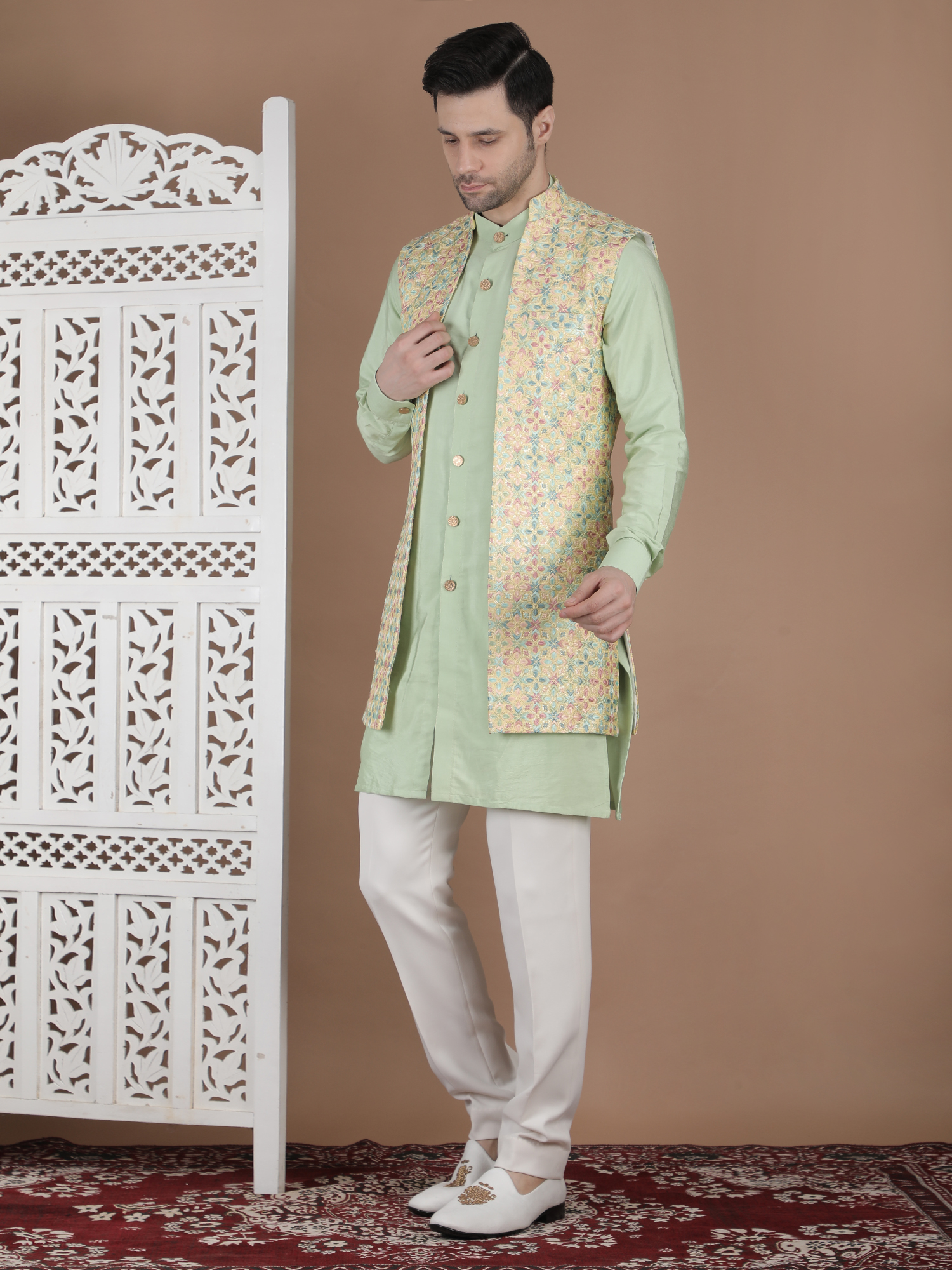 Experience timeless elegance with the W COAT-DCTVST-26. Designed for the modern gentleman, this premium ethnic wear piece blends traditional craftsmanship with contemporary sophistication. Made using high-quality breathable fabric, it ensures superior comfort and style for weddings, festive occasions, and grand celebrations. The refined detailing and tailored fit enhance your overall presence, making it a perfect statement outfit. Priced at ₹23990, this outfit reflects luxury, heritage, and unmatched quality. Elevate your wardrobe with this distinguished piece and stand out effortlessly at every event.
