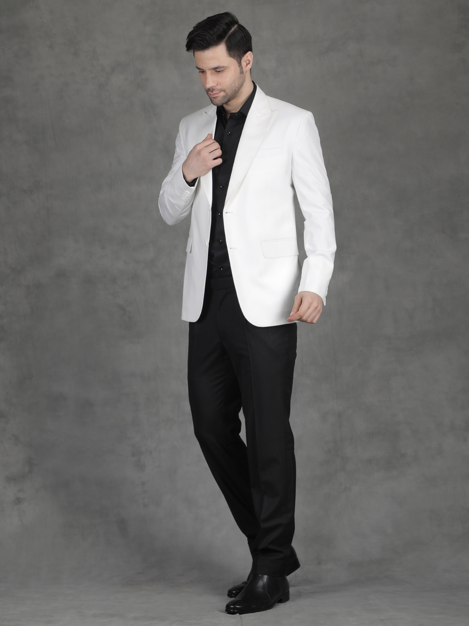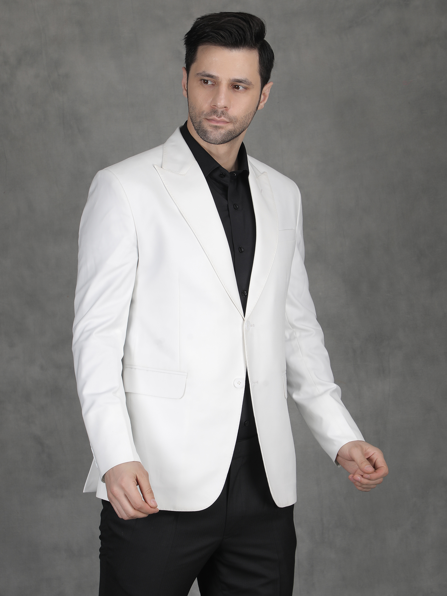 This White Reception Blazer suits receptions, cocktail parties, and evening events. The clean white tone stands out strongly, especially when paired with darker combinations. Therefore, it allows you to achieve a confident and premium look effortlessly.